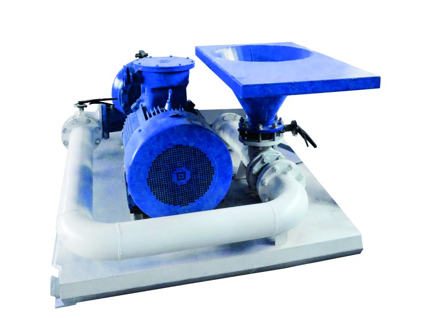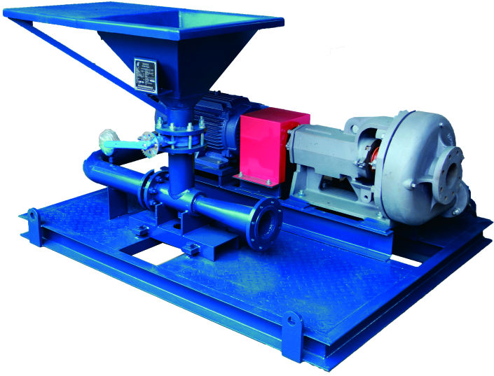 射流混漿裝置是用來配制或增加鉆井液總量,改變鉆井液密度、粘度、失水等,都需要將鉆井液材料(膨潤土,重晶石粉等)和相應(yīng)的化學添加劑(聚合物等)投入循環(huán)罐中,如果直接投入會造成鉆井液材料和化學添加劑大量沉淀或成團聚狀,不能獲得分散、均勻的鉆井液。