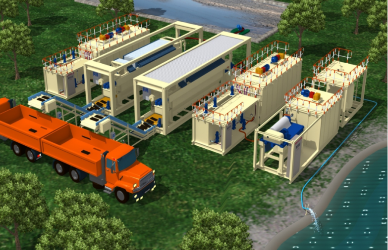 泥漿處理系統(tǒng)由1#循環(huán)單元,2#加藥單元,3#壓濾單元,4#污水處理單元,四部分構(gòu)成。